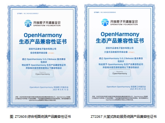 在金融科技快速发展与国产化替代加速推进的当下,技术创新与系统安全成为金融行业关注的焦点。近日,深圳市证通电子股份有限公司(以下简称“证通”)迎来重大喜讯,其综合柜面终端、大堂式自助服务终端等多款智慧金融厅堂一体化产品方案,成功通过 OpenHarmony 5.0.2 版本的兼容性测评,并获颁OpenHarmony生态产品兼容性证书。这一成果不仅彰显了证通在金融科技领域的深厚技术实力,更为金融行业的数字化转型注入了新的活力。